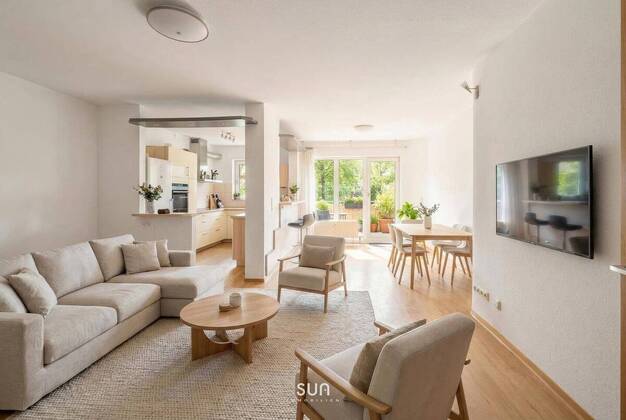 **Charmante 3-Zimmer-EG-Wohnung** mit großem Wohn-Essbereich, Bartheke und großer Loggia