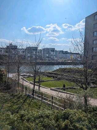 Die Wohnung liegt direkt am Offenbacher Hafen.